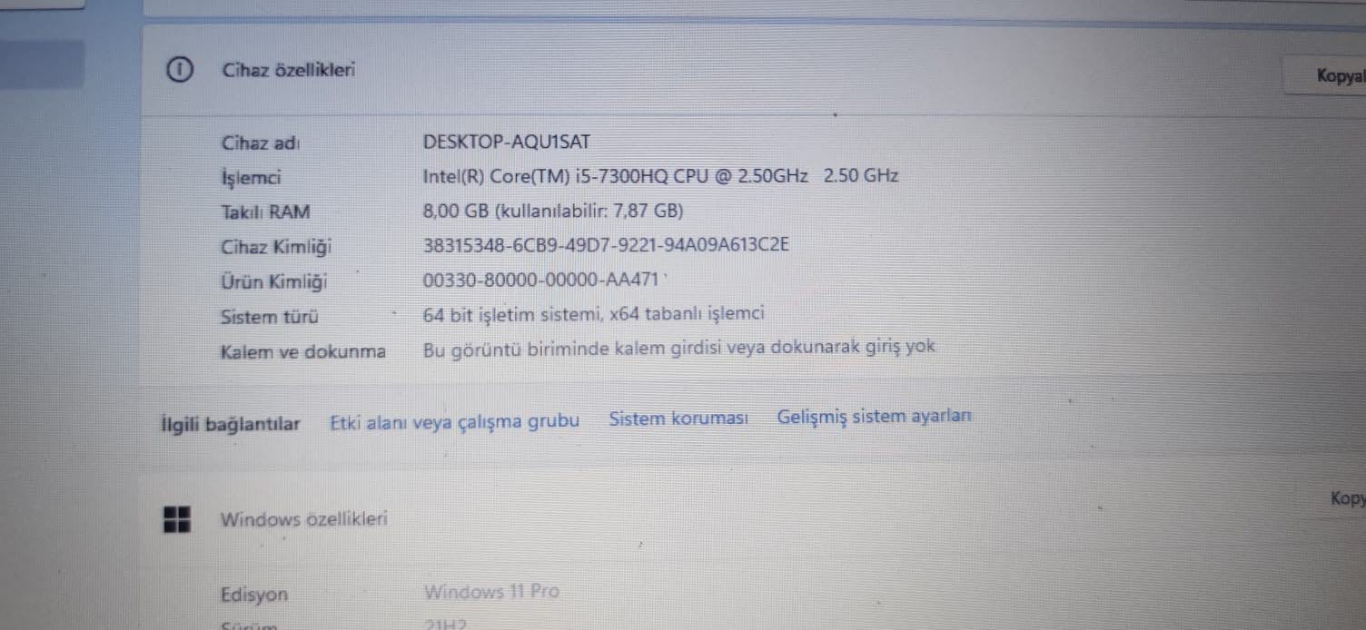 İŞLEMCİ: INTEL CORE I5 7300HQ 2.5GHZ