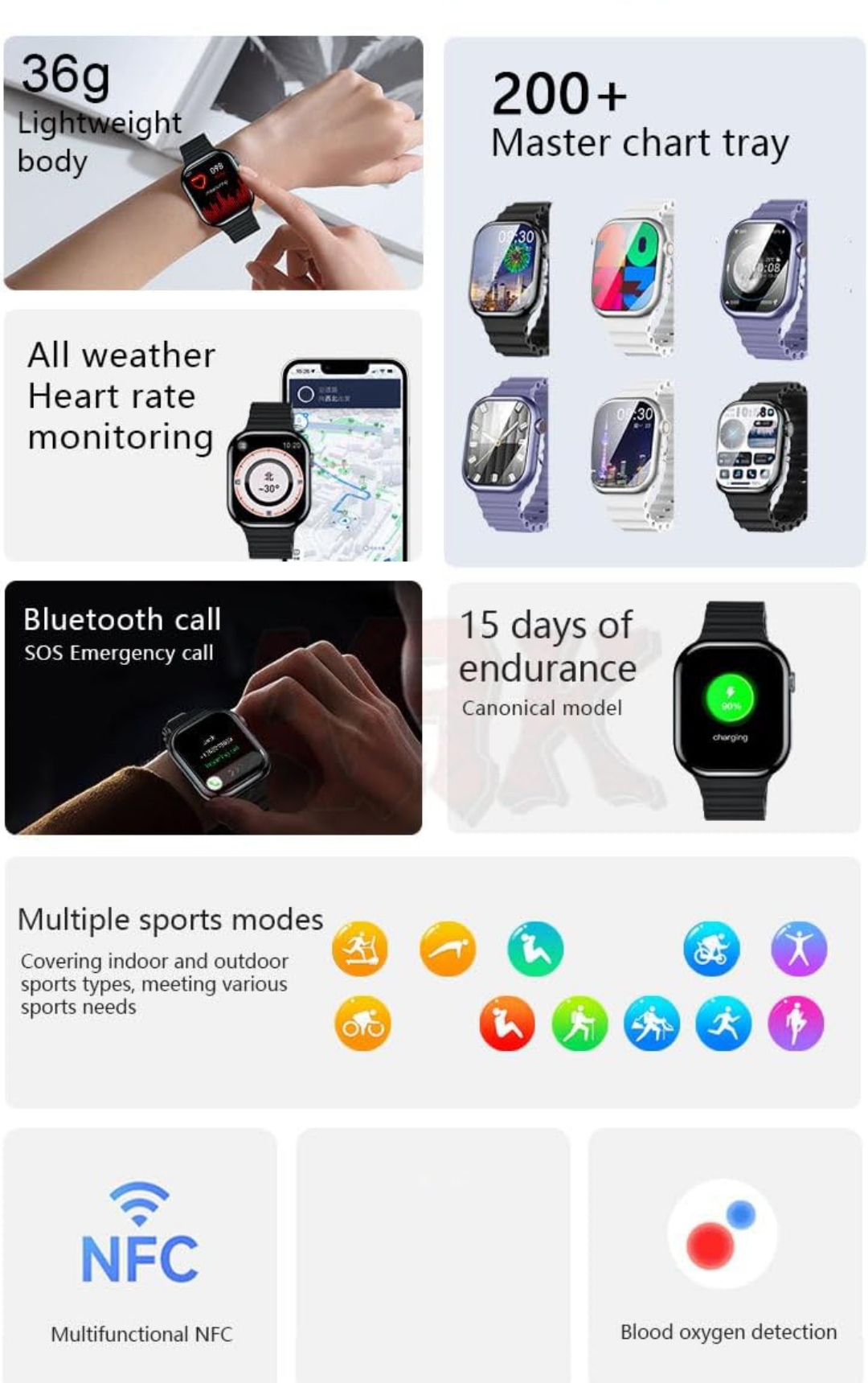 7.380mAh büyük pil, uzun bekleme, IP68 su geçirmez, 300+ kadran, çeşitli tarzlarda çok yönlü;