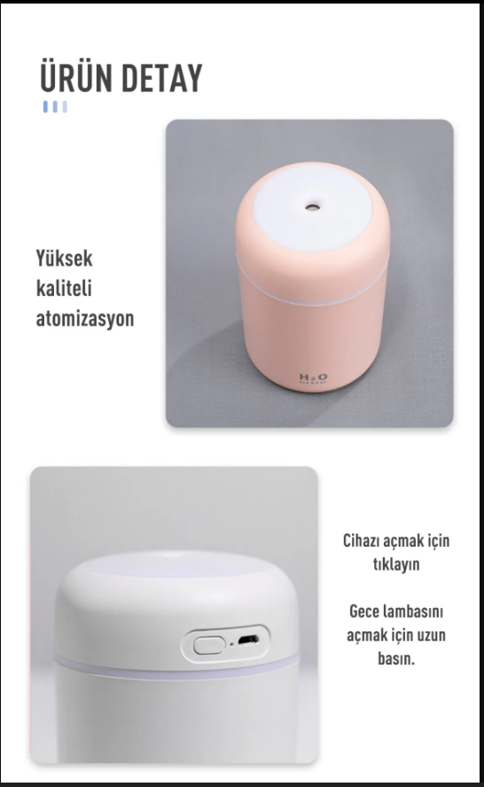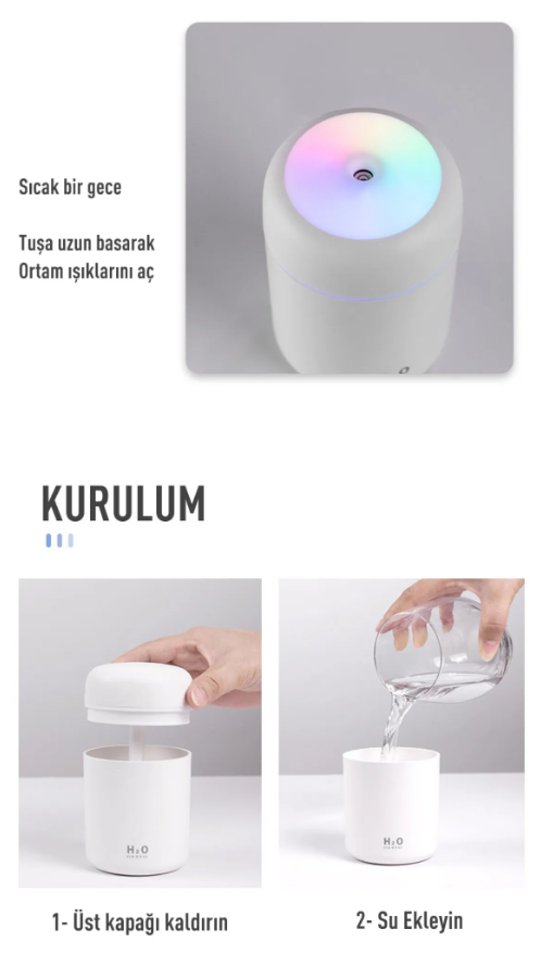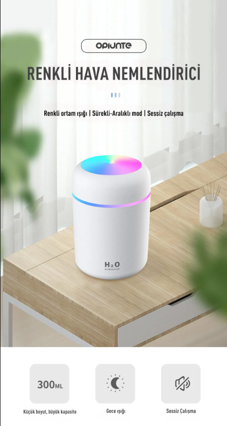 teknOMaster Farkıyla Sizlerle. H2o Humidifier 300 Ml Ulrasonik Hava Nemlendirici Buhar Makinesi Ve Aroma Difüzörü