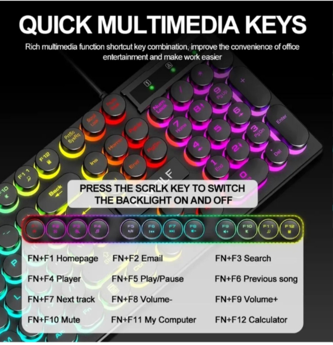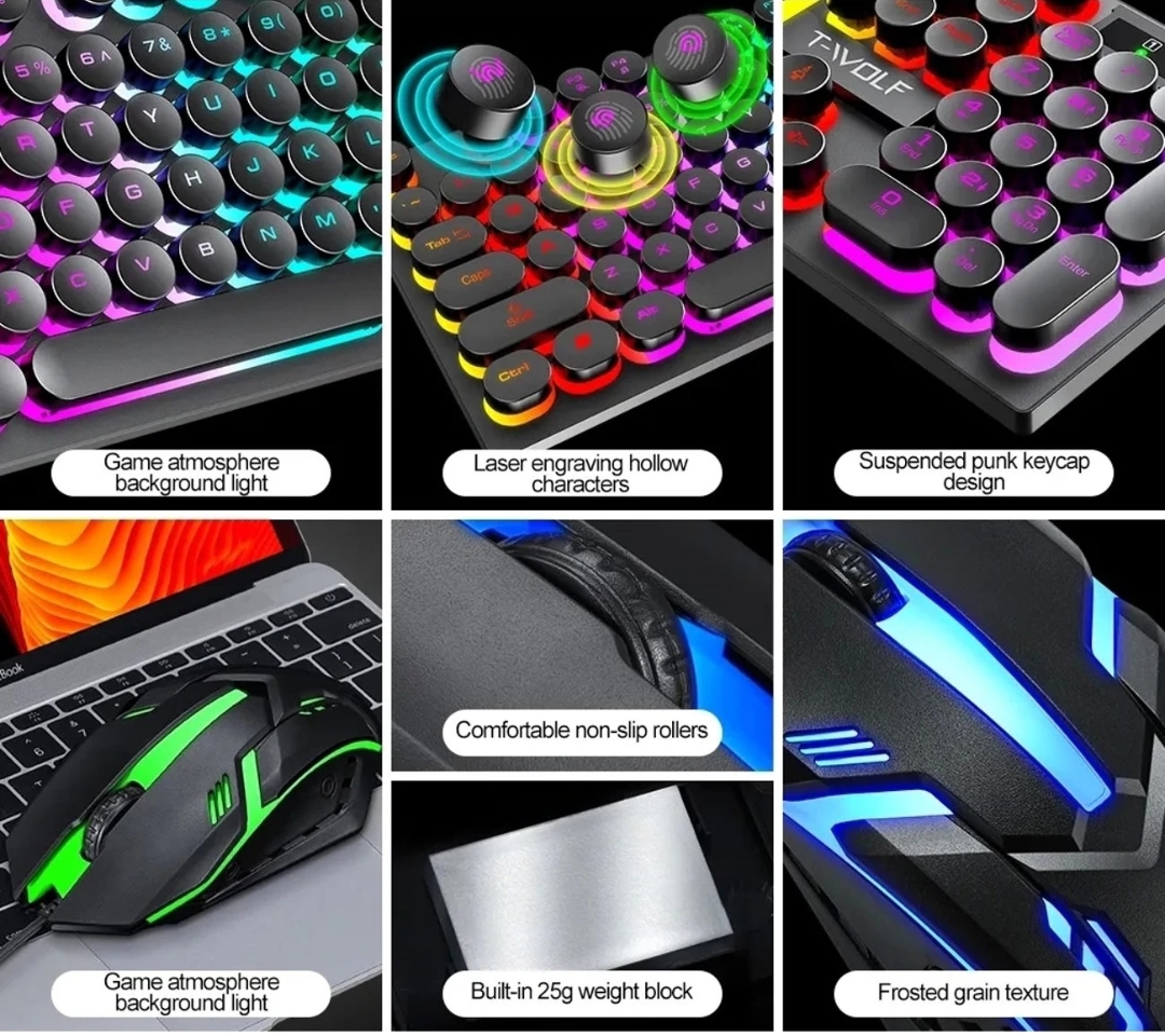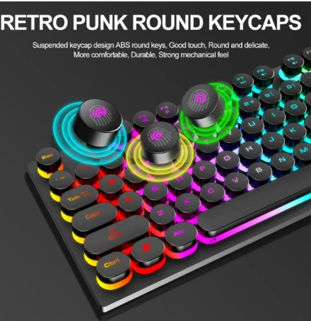 Hem klavye hem mouse Punk yuvarlak tuşlu modelimiz. Klavye tuşları mekanik hislidir.