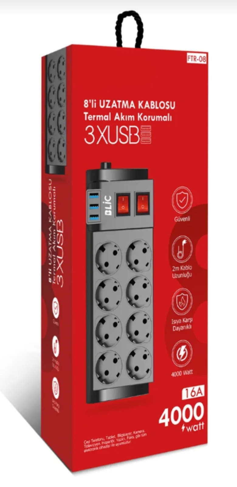 Güvenle kullanabileceğiniz akım korumalı priz teknolojisi sayesinde hızlı ve etkili bir işlem deneyimi yaşayabilirsiniz. 8’li fiş kullanımı ile aynı anda 8 cihaz fişe takılarak çalıştırılabilir. Birbirinden farklı işlemleriniz için akım korumalı priz USB girişi de bulundurur ve güç kaynağı olmadan cihazları direk USB girişine bağlayarak şarj edebilirsiniz.