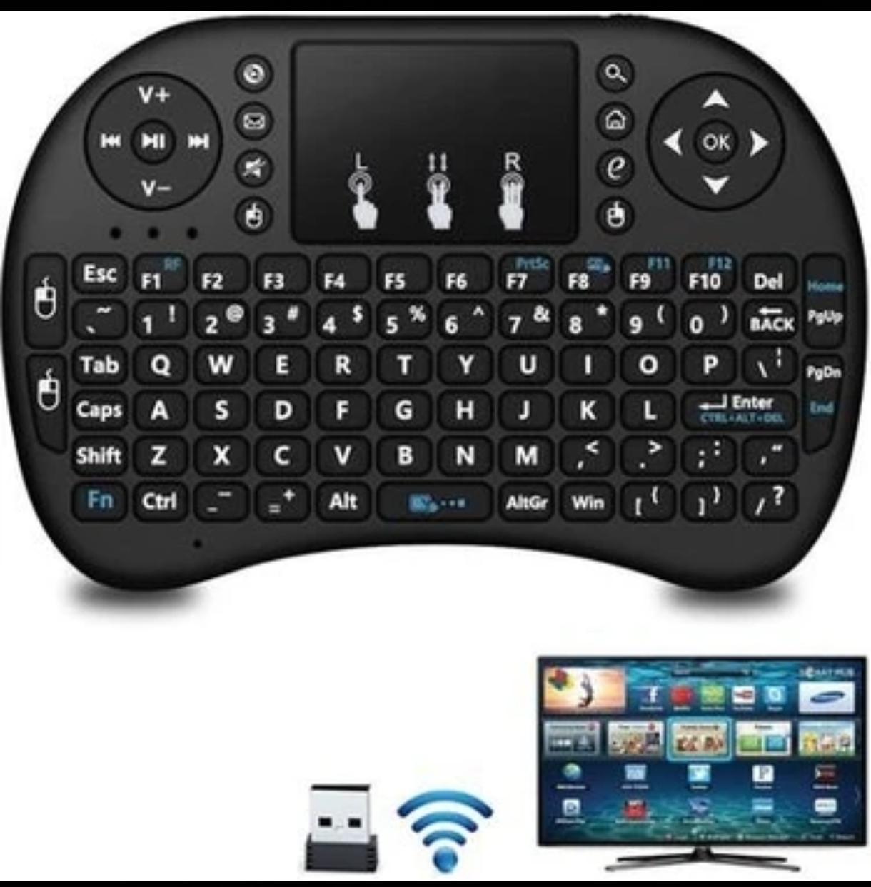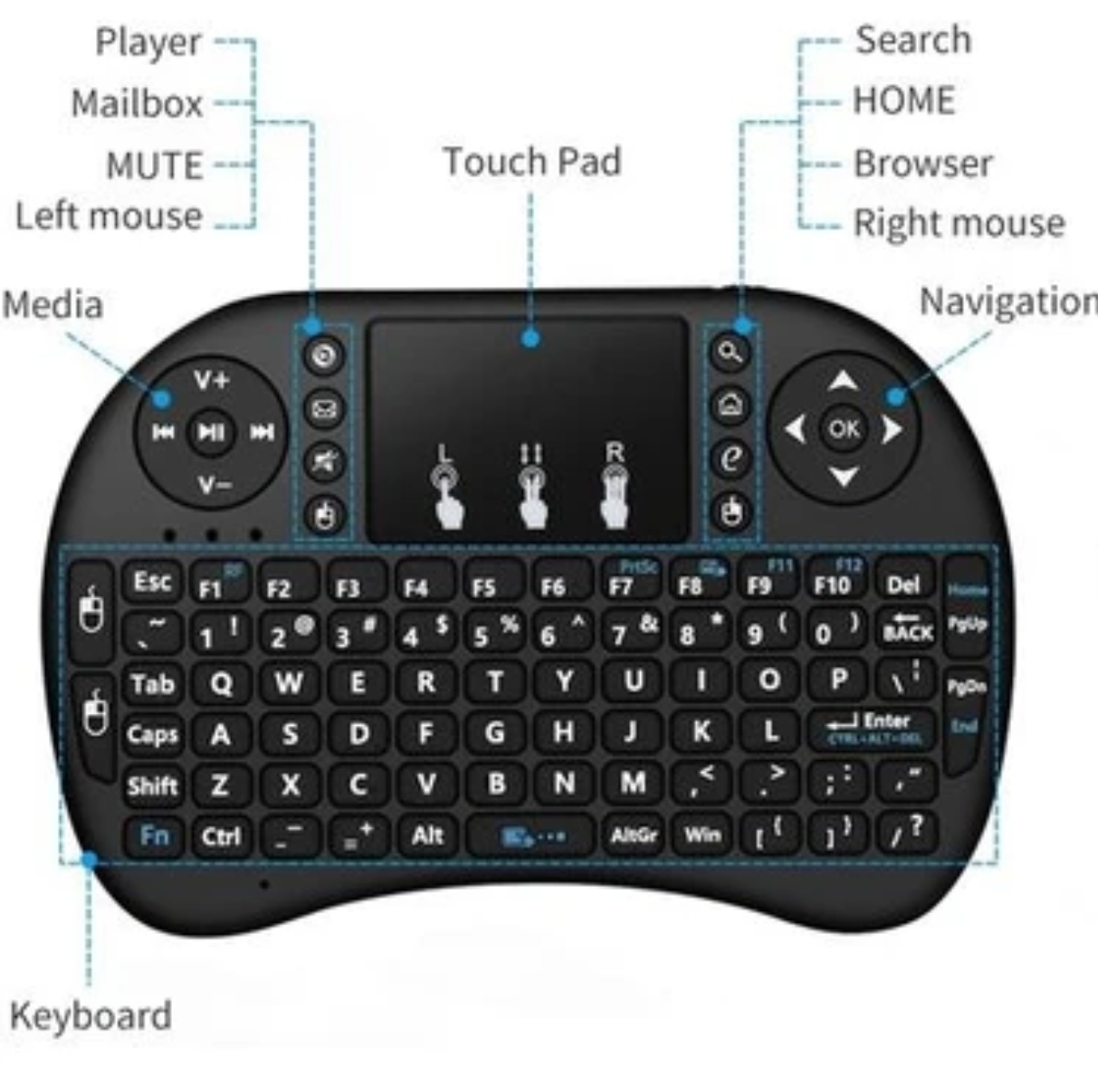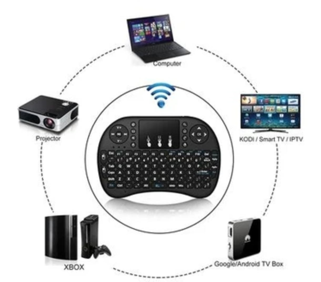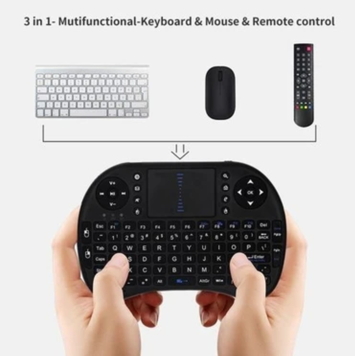 --- Güçlü bir mini kablosuz klavye uzaktan kumanda, RF klavye + çoklu dokunmatik + arkadan aydınlatmalı.