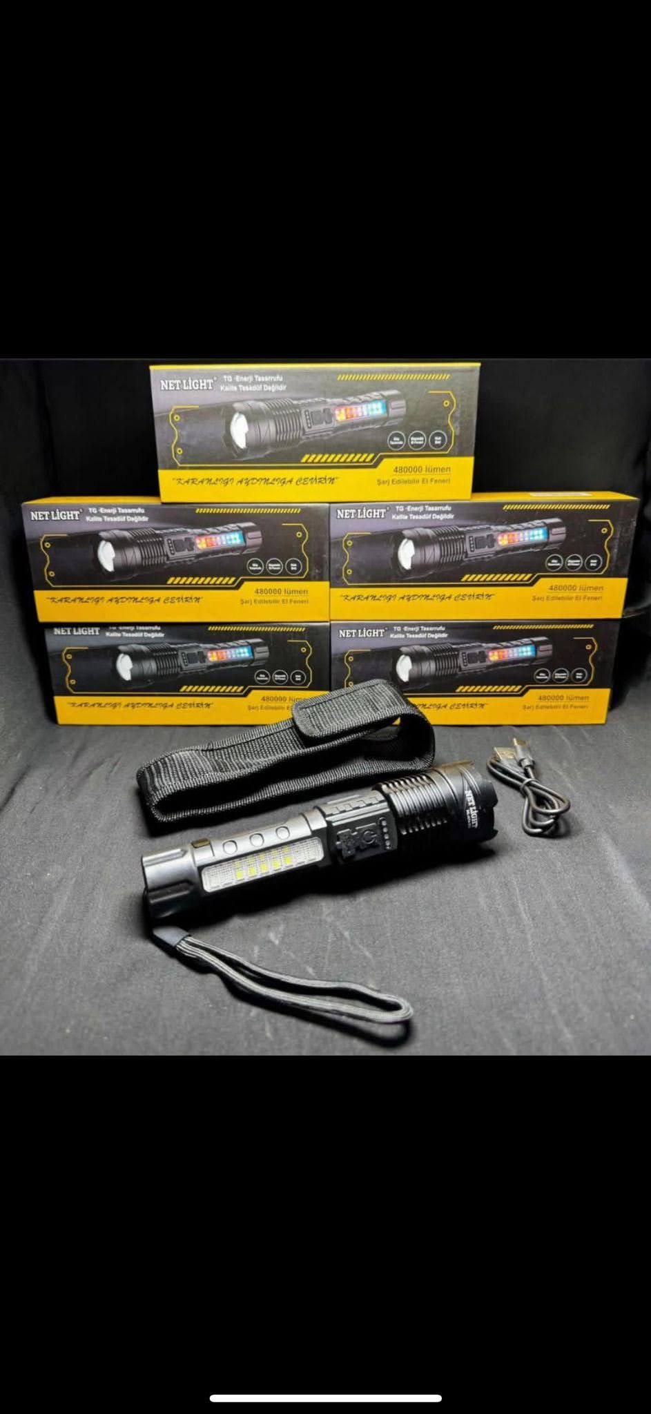 48.000 Lümen Gerçek Işık Gücü 6 Modlu LED Sistemi + COB Panel Zoom Lens Teknolojisi Kırmızı-Mavi Uyarı Flaşörü Şarjlı, Taşınabilir, Kutulu Geniş Kullanım Alanı