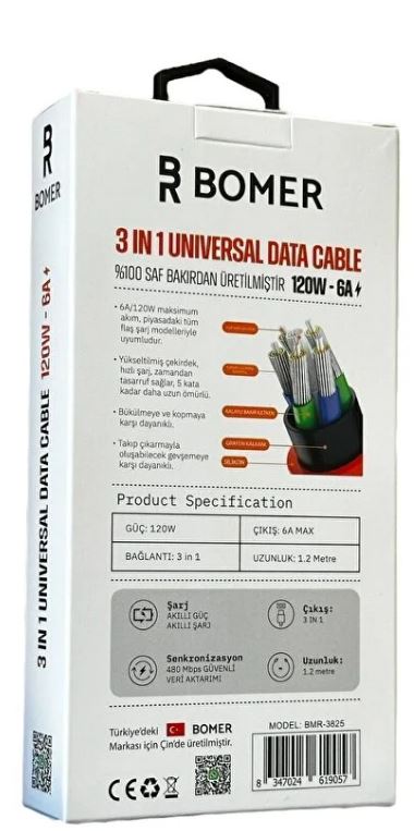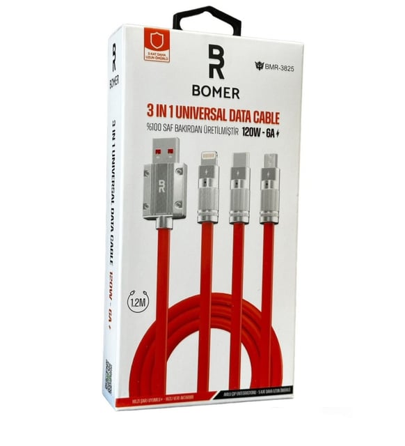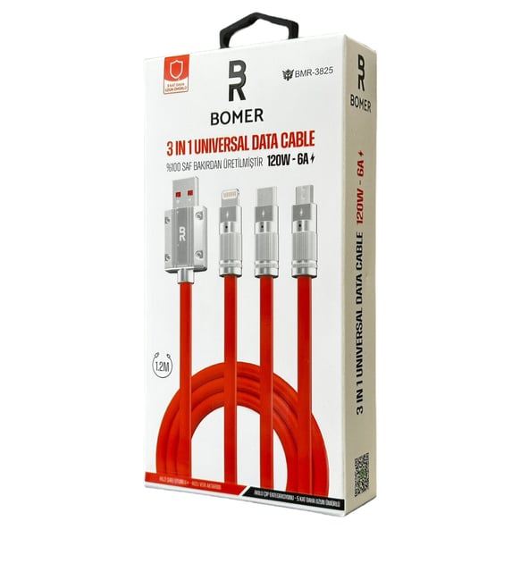 3 İn 1 Uni̇versal Data Şarj Kablosu 120W-6A Hızlı Şarj