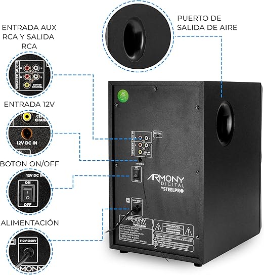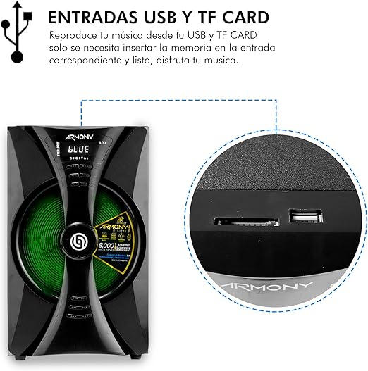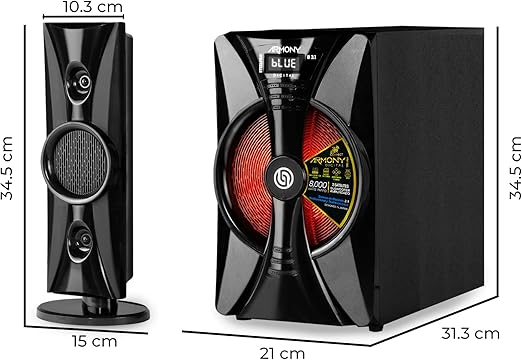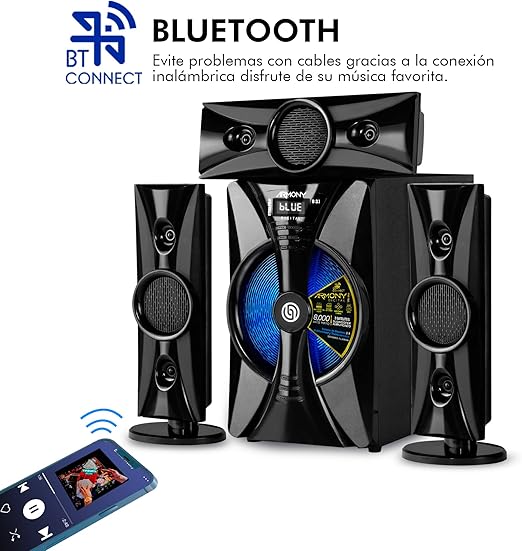 --- STEELPRO --- 3.1 Çok İşlevli Mini Bileşen Sistemi ve Ev Sineması --- ARMONY - B3.1 --- ARMONY'nin B3.1 Mini bileşen sistemiyle bir Surround ses sistemi ekleyin. Derin baslarla güçlü bir ses sunan 6,5 inçlik subwoofer sayesinde müziğinizin keyfini çıkarın. Birlikte HD kalitesinde Premium Dijital Ses sağlayan 3 uydusu vardır. Dahili Bluetooth özelliği sayesinde cihazlarınızın müziğinin keyfini kablosuz olarak çıkarabilirsiniz. Ayrıca, USB ve TF KART oynatma modları sayesinde en sevdiğiniz müzikleri dinleme şansınızı artırır. En sevdiğiniz FM radyo istasyonlarını çalın. Dijital radyo alıcısı, her FM istasyonunu kaydeden bir belleğe sahiptir ve anten sinyallerini net bir şekilde alır. 7 ön ayarlı ekolayzır sayesinde en sevdiğiniz müziğin sesini geliştirin. -Sistem 3.1 çok işlevli ve ev sineması -USB Oynatıcı, TF Kart. -Dahili BLUETOOTH -FM Ayarı -Yardımcı Giriş -8000 watt P.M.P.O. -220 watt RMS + 85 watt x 3 (Uydu) -Çok Renkli Işık Efektleri (Subwoofer) -7 ön ayarlı ekolayzır İÇERİR: -Uzaktan Kumanda -Kullanım Kılavuzu - Her biri 1 metre uzunluğunda hoparlör kabloları - 6,5 inç yüksek performanslı subwoofer - 3 uydu STEELPRO En iyi fiyat!