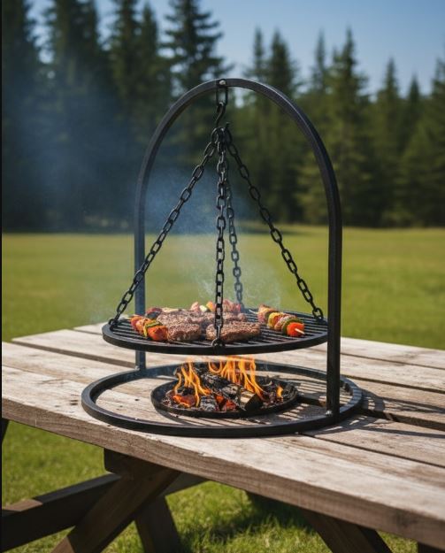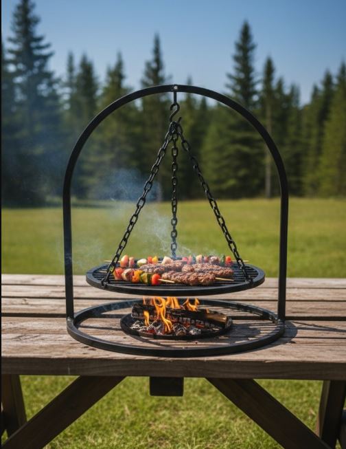 Açık Hava Barbekü Standı Yüksekliği Ayarlanabilir Zincirli Döküm Izgara